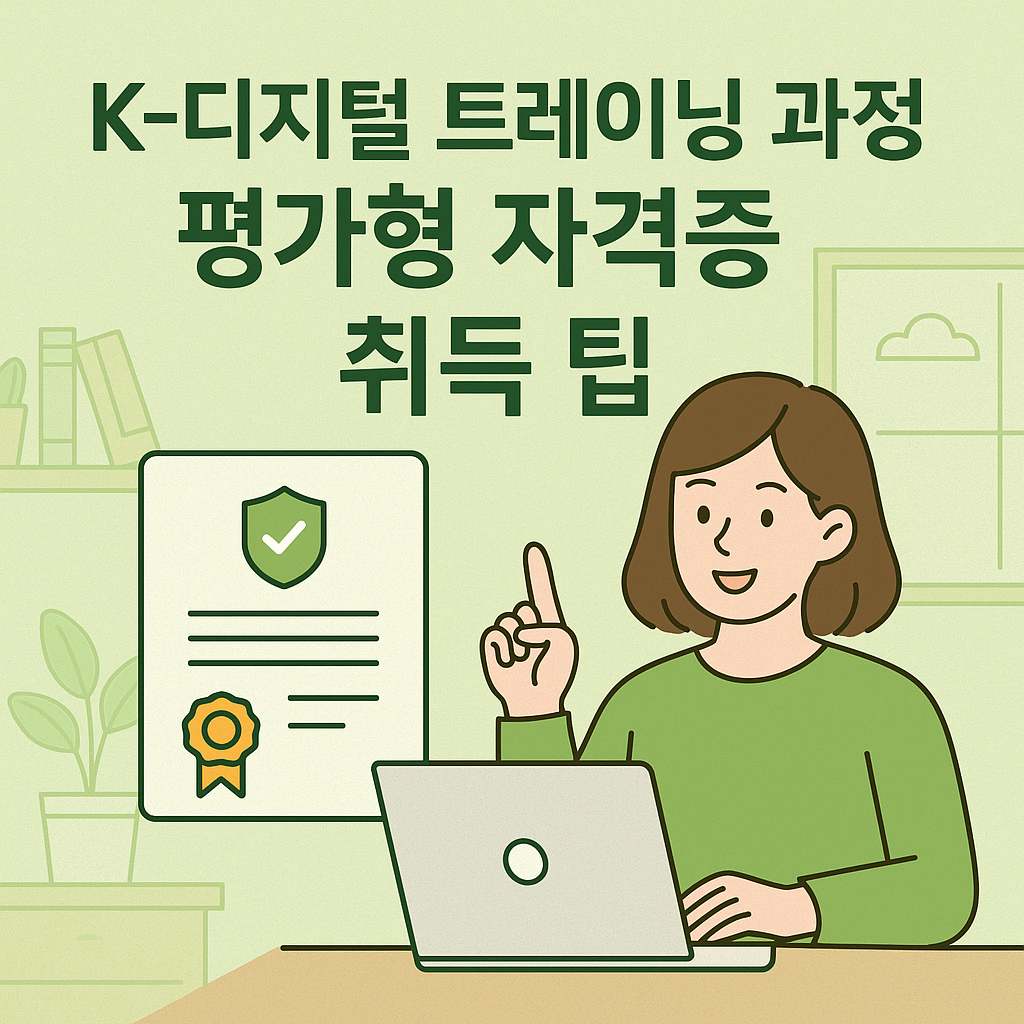 K-디지털 트레이닝은 수료도 중요하지만, 자격 취득까지 가야 진짜 경쟁력이 됩니다. 평가형 자격증은 실무 중심 훈련을 그대로 연결할 수 있는 최적의 방식! 수료 전부터 자격증 준비를 염두에 두고 접근하면, 취업 시장에서 한 발 앞설 수 있어요. 자격은 실력을 증명하는 또 하나의 도구입니다!